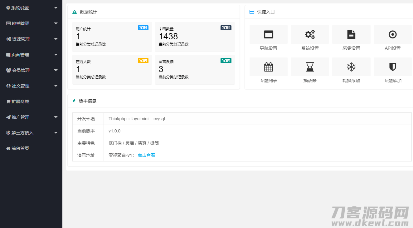 程序对接360影视,和可以自己自定义苹果cms资源站接口,程序后端采用layui