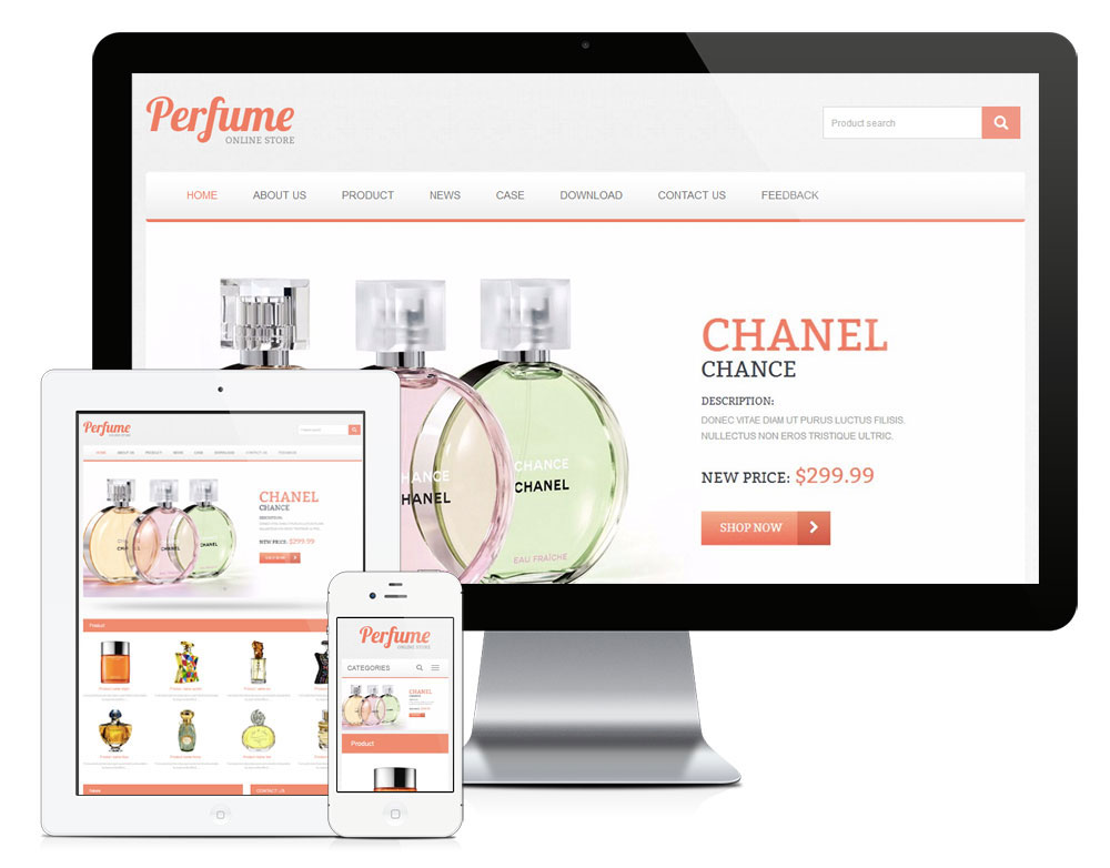 易优cms响应式香水外贸企业英文网站模板源码 自适应手机端