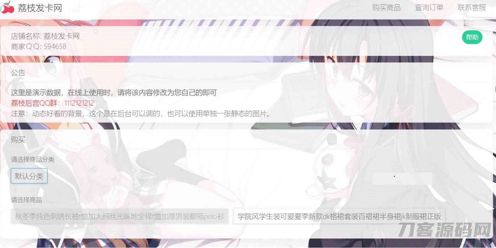 荔枝发卡2.0/集成当面付+扩展信息功能,一个二次元风格发卡系统源码。功能:自动