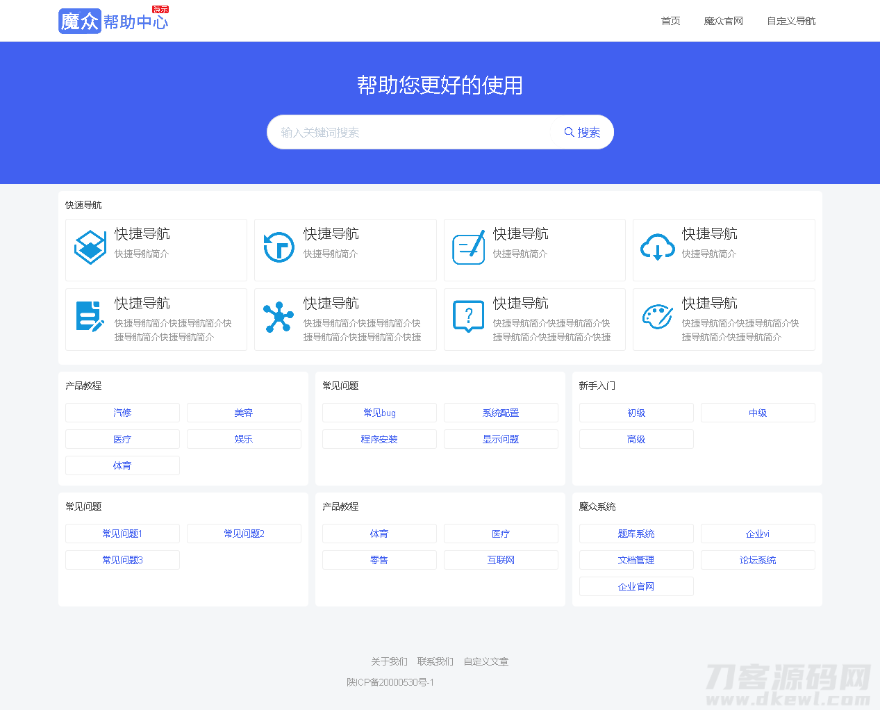 简介:魔众帮助中心系统基于PHP开发,支持支持快捷导航和常见问题,帮助您搭建一套
